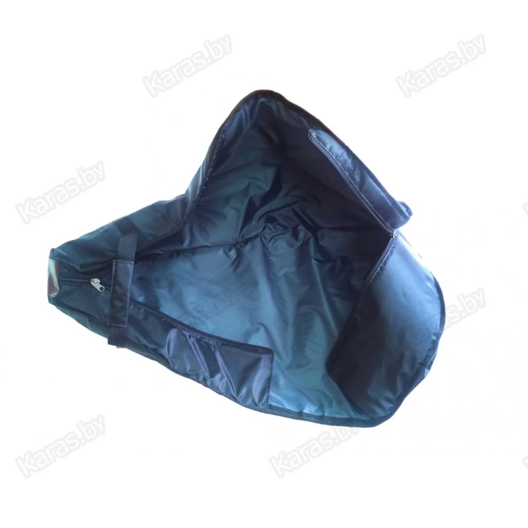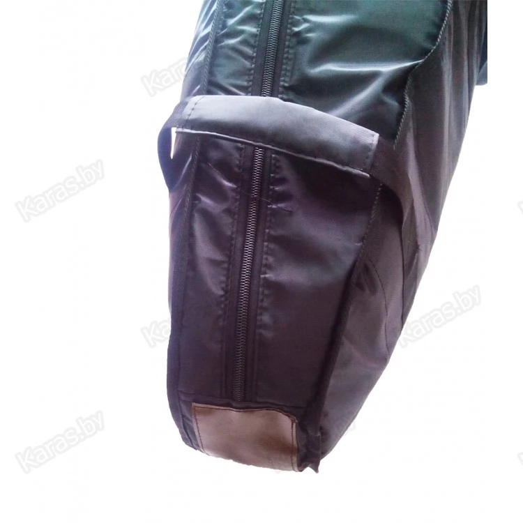 Чехол выполнен из прочной износостойкой ткани Oxford 600D. Противоударная прокладка (8 мм) позволит избежать механических повреждений при транспортировке. Низ чехла (изнутри и снаружи) усилен плотной тентовой ПВХ-тканью плотностью 630 г/м2. Чехол закрывается на надежную молнию (10мм). На чехле расположены шлейки для переноски и удобная ручка в нижней части для поднятие в багажник машины или прицеп.