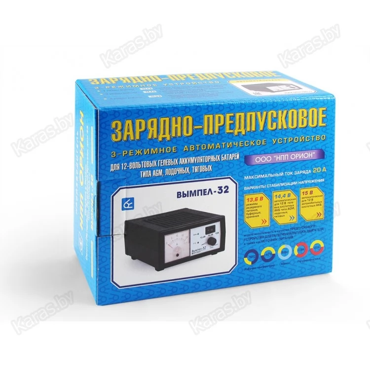 Зарядное устройство предназначено для заряда 12В автомобильных, лодочных, тяговых, гелевых аккумуляторных батарей любой емкости в автоматическом режиме (автоматическое уменьшение тока в конце заряда).