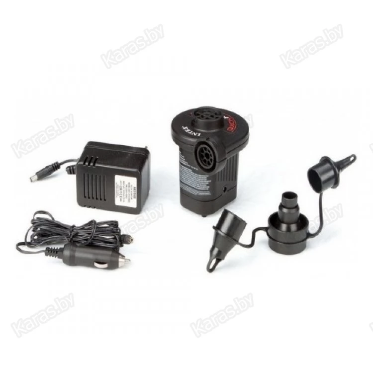 Насос электрический Intex 66632 прекрасное решения для экономии вашего времени. Он работает от сети и отличается компактностью и легкостью. Вес его составляет – 1,25 кг. Он всегда будет вашим верным помощником в поездках и на даче. Надуть любую кровать или диван можно всего за 5 минут. Изделие подходит для различной надувной продукции фирмы Intex . Удобно, что насос может работать в 220 Вольт и 12 Вольт. Каждый фирменный электронасос Intex отличается высоким качеством.