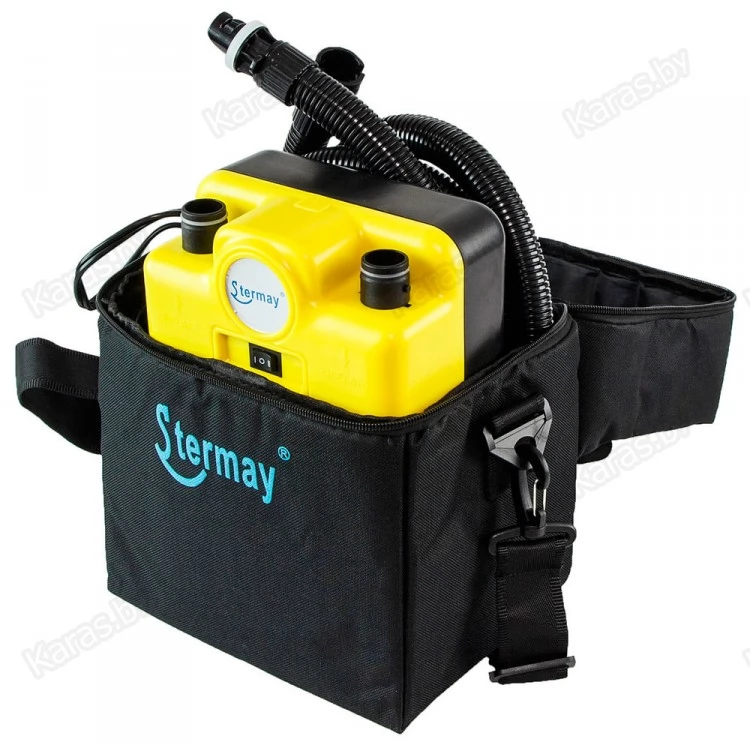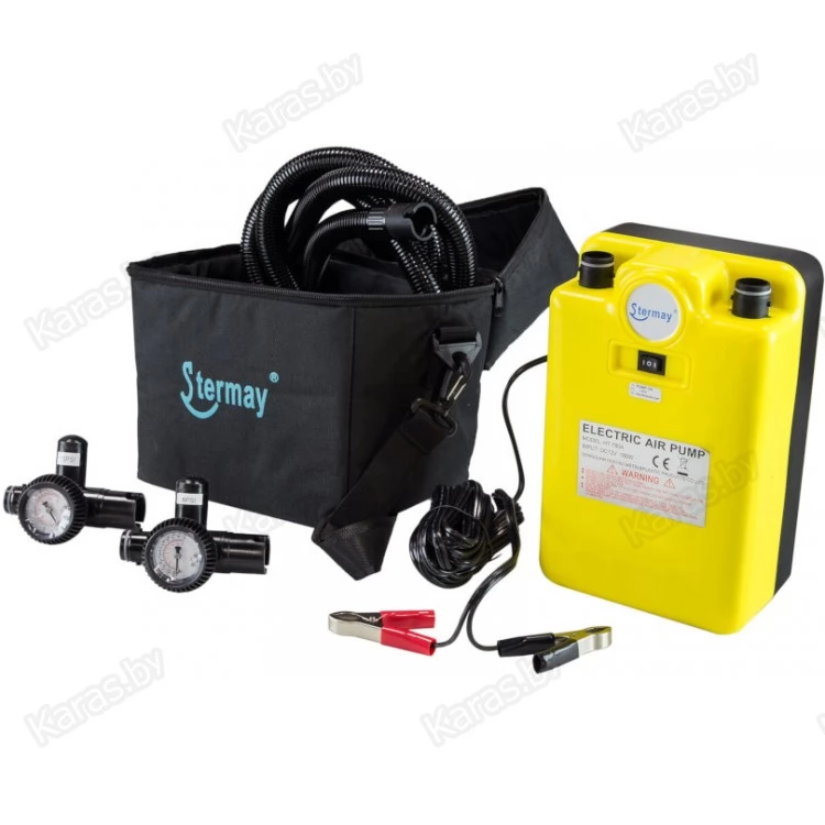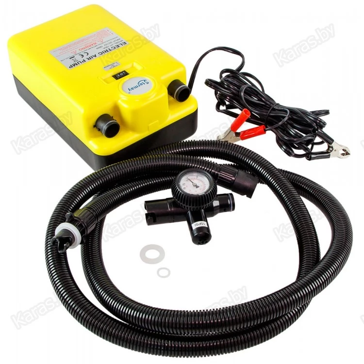 Насос электрический двухступенчатый низкого давления. Предназначен для быстрой накачки надувных лодок. Данный насос позволяет ускорить процесс складывания лодки, достаточно переставить шланг из выпускного отверстия насоса во впускное, и включить питание.