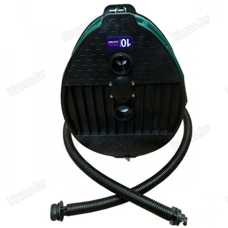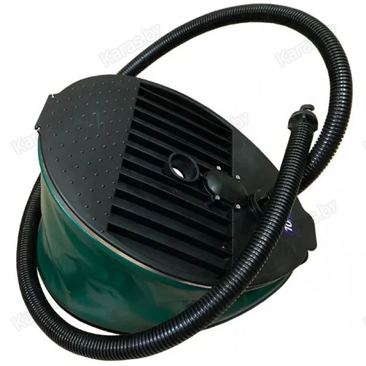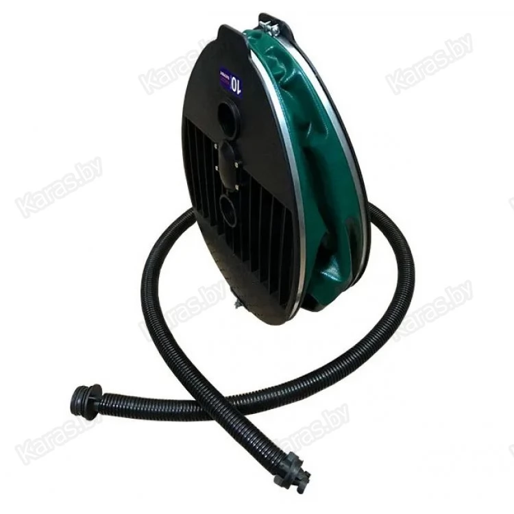 Меха насоса выполнены из прочной ПВХ-ткани, опорные поверхности - из ударопрочной пластмассы. Насос комплектуется гофрированным шлангом. В корпусе насоса имеются два специальных отверстия для надувания и сдувания, обозначенные стрелками. Насос не зависит от наличия рядом электросети, что делает его практически незаменимым в походах и на пикниках.