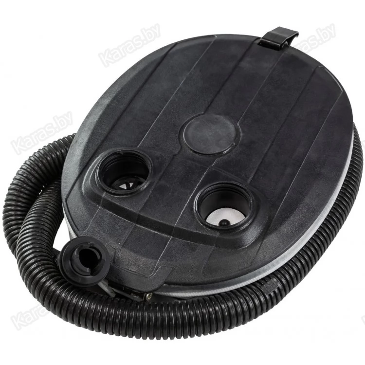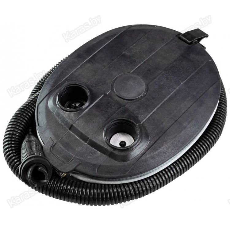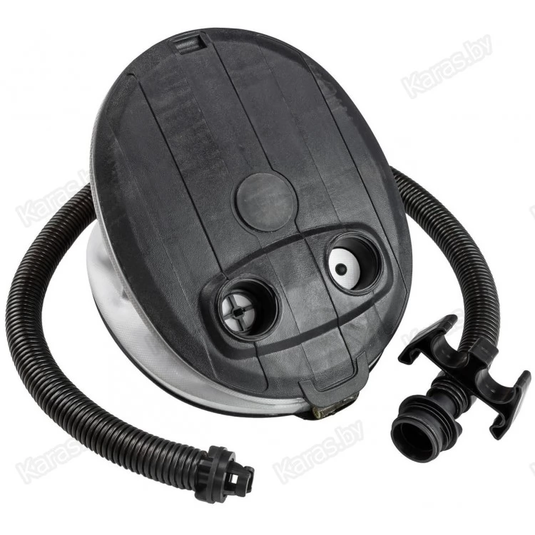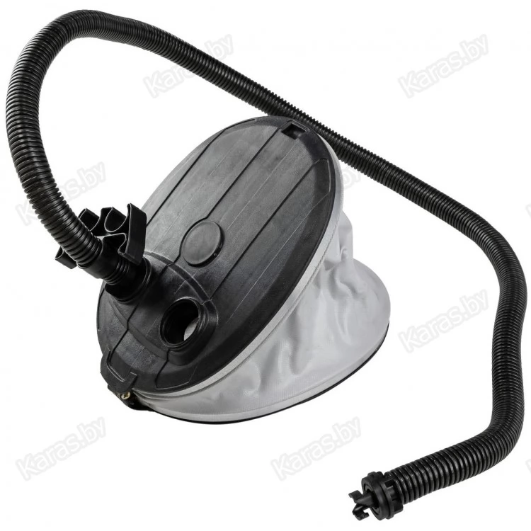 Меха насоса выполнены из прочной ПВХ-ткани, опорные поверхности - из ударопрочной пластмассы. Насос комплектуется гофрированным шлангом. В корпусе насоса имеются два специальных отверстия для надувания и сдувания, обозначенные стрелками. Насос не зависит от наличия рядом электросети, что делает его практически незаменимым в походах и на пикниках.