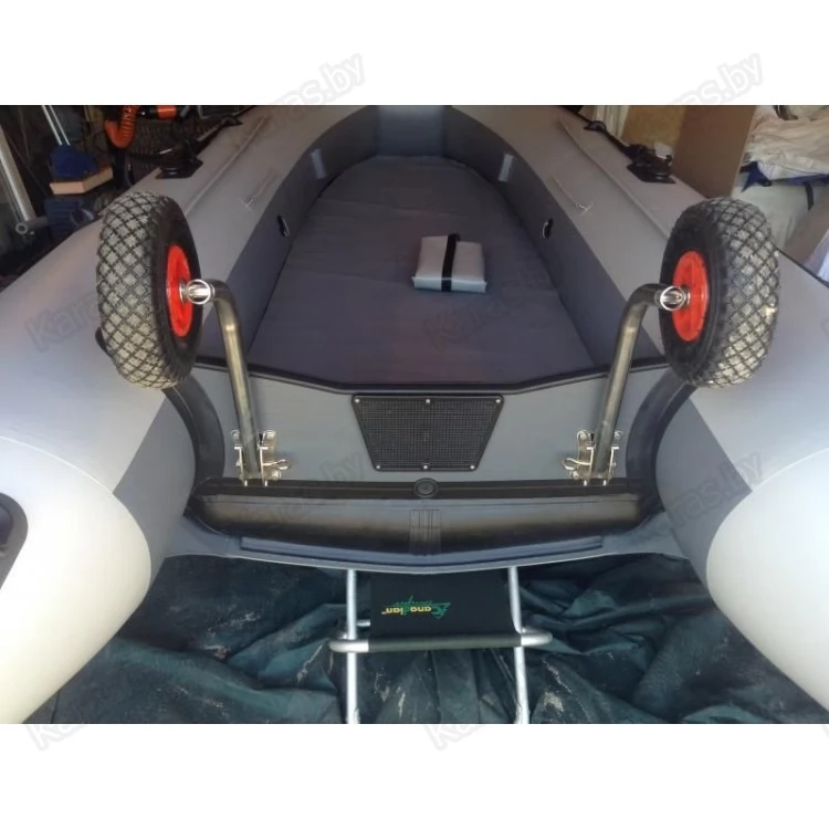 Возможна установка шасси на стационарный транец надувных лодок практически всех фирм производителей.