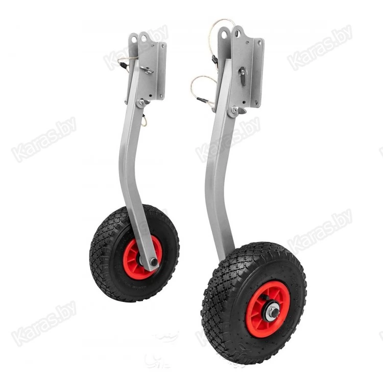 Колеса крепятся к внешней стороне транца, таким образом, чтобы их можно было сложить вверх и вниз беспрепятственно.