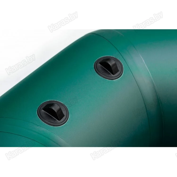 Жесткое вставное дно, состоящее из 3 частей влагостойкой ламинированной фанеры толщиной 6.5 мм с противоскользящим покрытием, позволяет пассажирам устойчиво держаться на ногах. Для охотников лодка послужит неплохим дополнением при вылове трофея из воды. Баллон лодки разделен на два изолированных отсека, что позволяет лодке удерживаться на плаву в случае серьезных повреждений. В комплекте с лодкой поставляется ГЕРМОБАУЛ, который является упаковочной сумкой и легко переноситься за плечами. В случае необходимости он послужит сумкой, куда можно убрать документы или вещи.