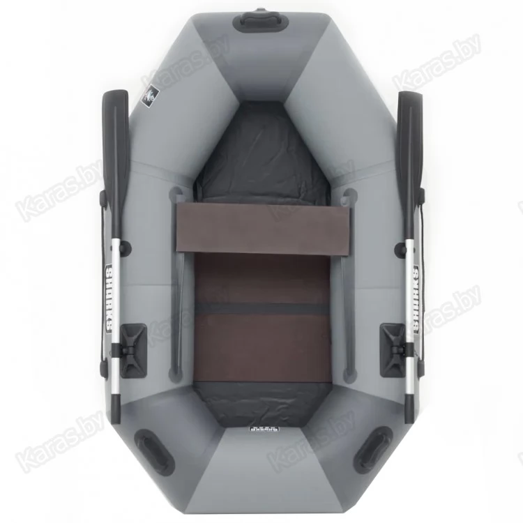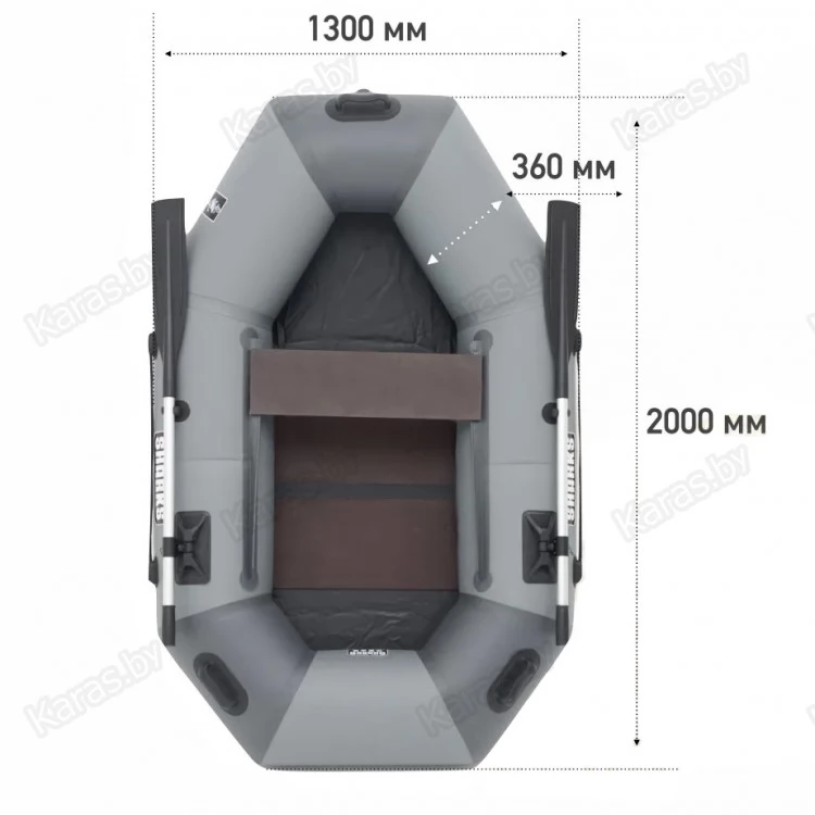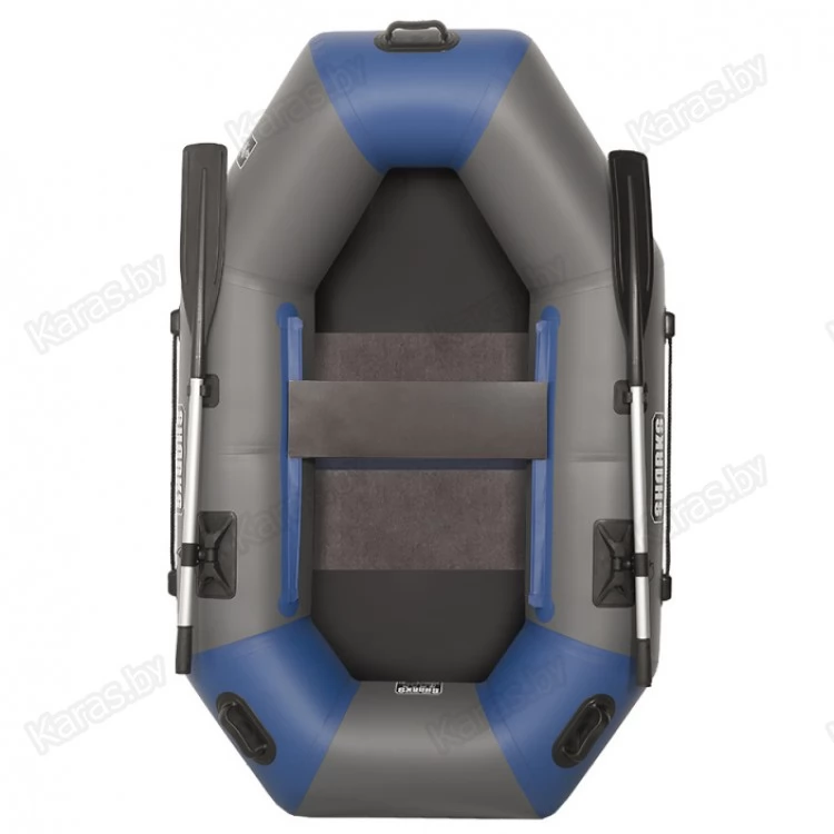 Весла выполнены из анодированного алюминия, лопасти - пластиковые. Весла для удобства транспортировки разбираются в половину длины. Благодаря жесткой слани (пол-книжка 81х76х0,5 см) в лодке удобно рыбачить стоя. Передвижные сидения позволяют настроить внутреннее пространство лодки под любой вкус.