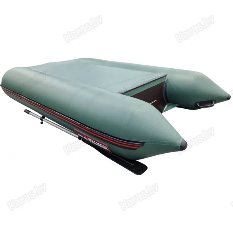 Благодаря солидной комплектации лодки обеспечится безопасность и необходимый комфорт на водоемах. Основным отличием лодки является хорошая вместительность и грузоподъемность. Кокпит (самый габаритный в классе) позволит взять с собою на борт помимо груза еще и трех пассажиров. Лодку можно укомплектовать в две сумки. На нее устанавливается лодочный подвесной мотор мощность которого равна 5 л.с.