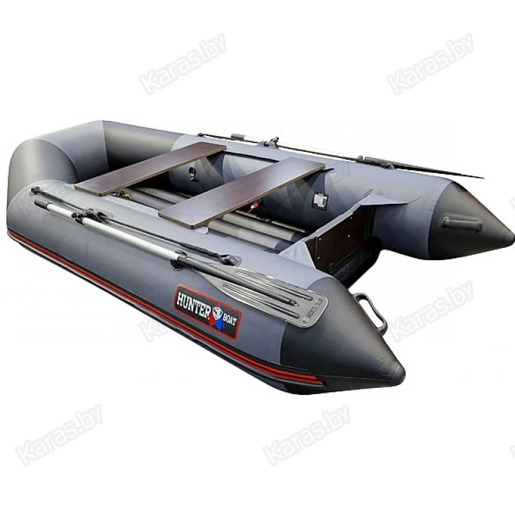 Надувная лодка Хантер 290 ЛКА объединила в себе все наработки, что есть у моделей надувных лодок со стационарным надувным дном низкого давления, выпускаемых нашим производством.