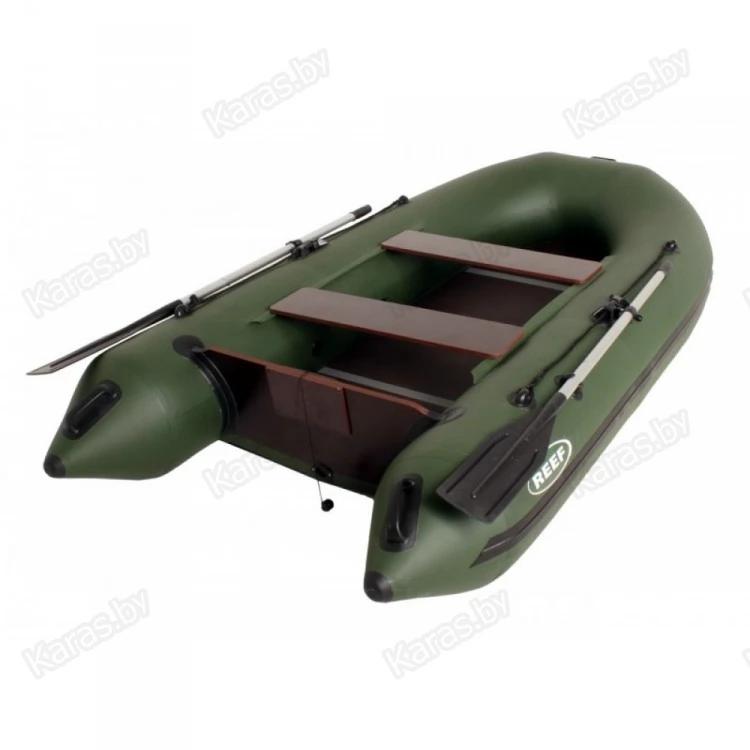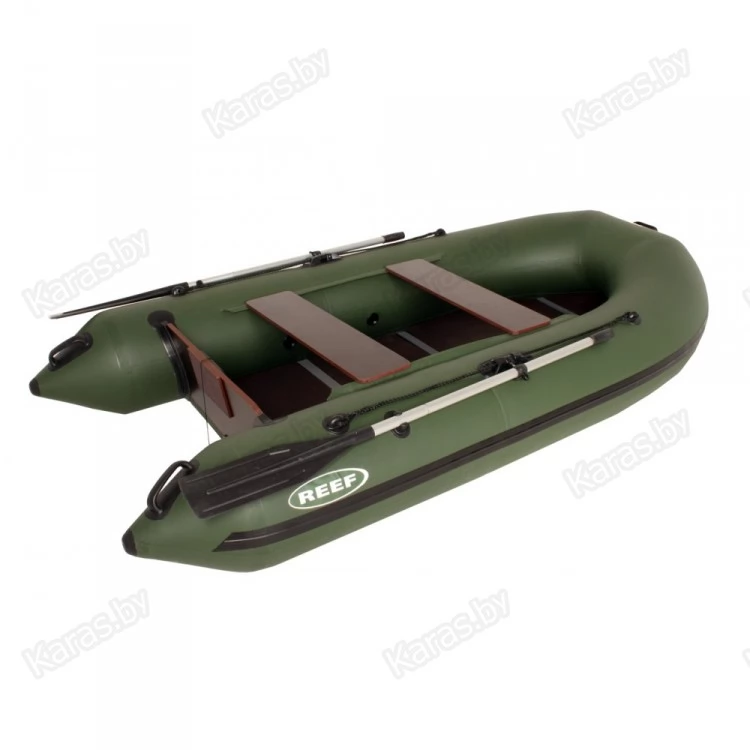 Надувная моторно-гребная лодка REEF 290K имеет надувной киль и два стрингера. Мотор, устанавливаемый на REEF 290K должен иметь мощность не больше 5 л.с. Для изготовления баллонов мы используем специальную ПВХ-ткань немецкой фирмы HEYTEX. Ее плотность 700 г/м2. Для изготовления днища идет ткань уже большей плотности - 750 г/м2. Корпус лодки состоит из 3 герметичных отсеков. Это придает большую безопасность при действиях на воде. Для защиты корпуса лодки при швартовке и установки тента служит 6 мм привальный брус. В лодке предумотрены два передвижных сиденья по системе ликтрос-ликпаз. Ширина банки 20 см, длина - 80 см. Диаметр баллона лодки 0.40 м.