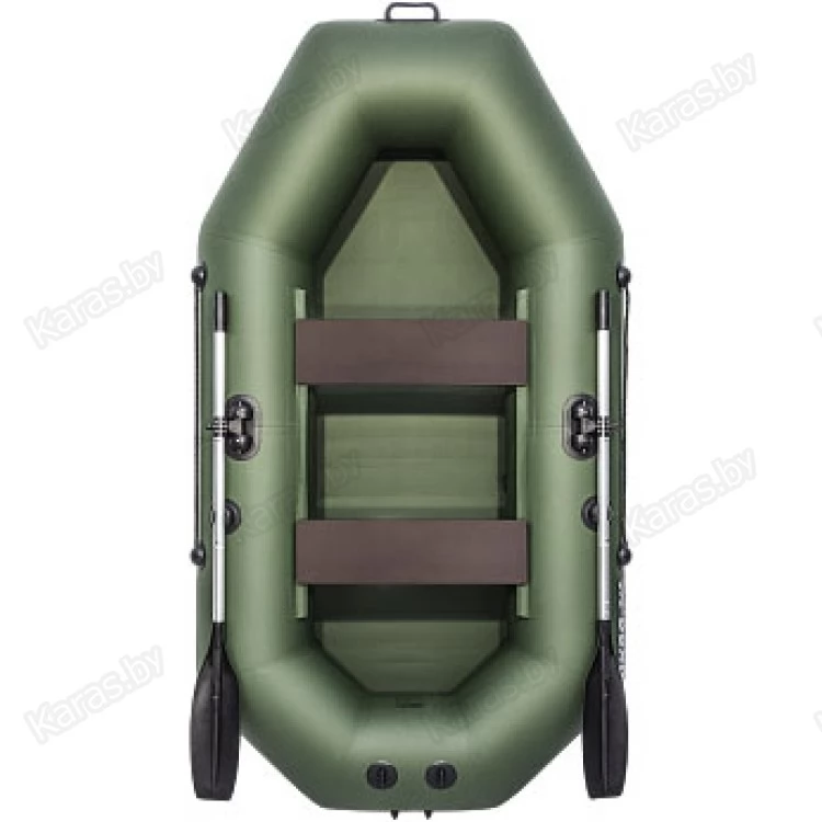 Надувная ПВХ лодка «Аква Мастер 240» - легкое двухместное судно, предназначено для прибрежной рыбалки в закрытых водоемах и может эксплуатироваться в качестве судна для преодоления небольших водных преград при пеших походах, сбора стреляной дичи на утиной охоте. Бортовой баллон, диаметром 36 см имеет два независимых отсека, каждый из которых оснащен воздушным клапаном. Дно лодки приклеено к нижней касательной части борта, перекрывая его, тем самым, защищая от преждевременного истирания ткани баллона. При производстве этой модели используется ПВХ материал плотностью 750 г/кв.м зеленого цвета. Габариты кокпита составляют 168 см по длине и 60 см по ширине. Лодка комплектуется двумя фанерными сиденьями, свободно перемещающимися вдоль кокпита, благодаря системе установки "ликтрос-ликпаз". «Аква Мастер 240» оснащена леерными поясами, каждый из которых растянут по внешней стороне борта лодки между двух шайб. В носовой части имеется ручка для переноски, а на корме размещены четыре шайбы для установки навесного транца. Данная модель комплектуется разборными дюралюминиевыми веслами с пластиковой фурнитурой, длиной 150 см, поворотными уключинами и защелками весел.