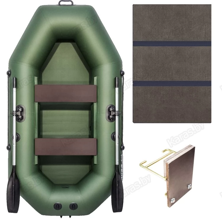 Надувная ПВХ лодка «Аква Мастер 260» - легкое двухместное судно, предназначено для прибрежной рыбалки в закрытых водоемах и может эксплуатироваться в качестве судна для преодоления небольших водных преград при пеших походах, сбора стреляной дичи на утиной охоте. Бортовой баллон, диаметром 36 см имеет два независимых отсека, каждый из которых оснащен воздушным клапаном. Дно лодки приклеено к нижней касательной части борта, перекрывая его, тем самым, защищая от преждевременного истирания ткани баллона. При производстве этой модели используется ПВХ материал плотностью 750 г/кв.м зеленого или серого цвета. Габариты кокпита составляют 188 см по длине и 60 см по ширине. Лодка комплектуется двумя фанерными сиденьями, свободно перемещающимися вдоль кокпита, благодаря системе установки "ликтос-ликпаз". «Аква Мастер 260» оснащена леерными поясами, каждый из которых растянут по внешней стороне борта лодки между двух шайб. В носовой части имеется ручка для переноски, а на корме размещены четыре шайбы для установки навесного транца. Данная модель комплектуется разборными дюралюминиевыми веслами с пластиковой фурнитурой, длиной 150 см, поворотными уключинами и защелками весел.