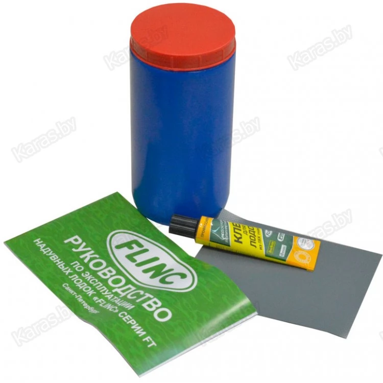 Полы (толщина 9 мм) лодки FLINC FT290K сплошная слань-книжка, усилены облегченными стрингерами. Транец лодки оборудован брызгоотбойниками. В сумке- конверте упакованы лодка, насос и ремкомплект. В сумке для пайолов упакованы пайол-книжка, банки (сидения)