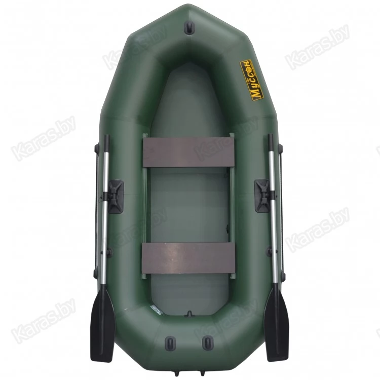 В комплектацию лодки входят алюминиевые разборные весла и две банки (фанерные сидушки). На бортах установлены поворотные уключины и держатели для весел. Вдоль обоих бортов протянуты страховочные лееры. За них удобно держаться во время плавания, также за эти тросы лодку переносят по суше. На носу имеется рым, который пригодится для буксировки, швартовки, навешивания якоря.