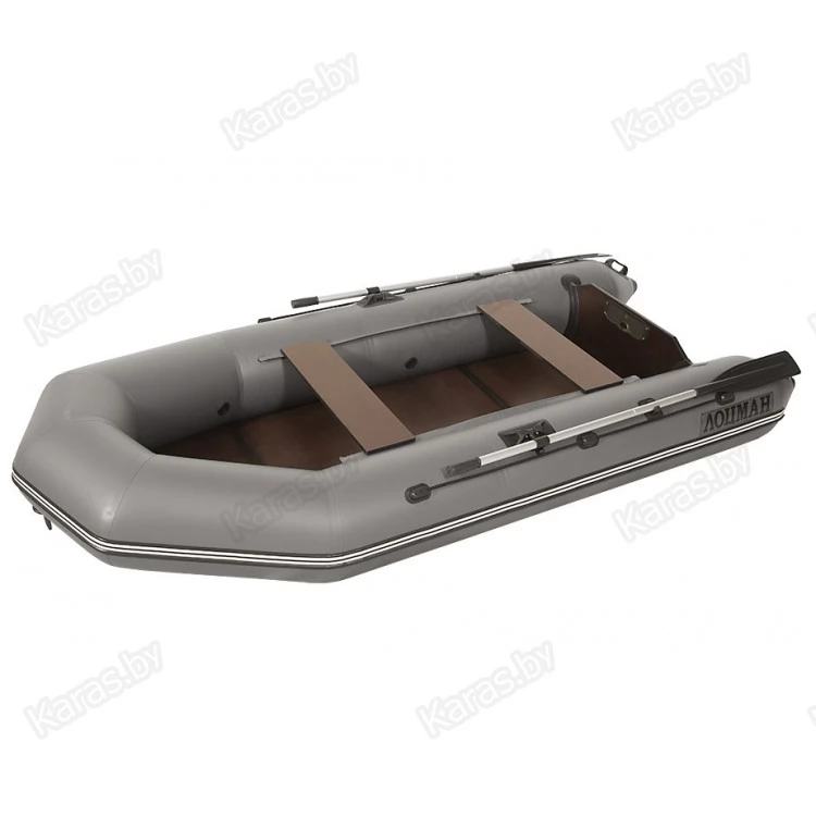 Лоцман M-290 ЖС - плоскодонная надувная лодка со стационарным транцем и возможностью установить лодочный мотор мощностью до 5 л.с. Лодка оснащается жестким полом-книжкой. Плотность ПВХ материала 800 г/м2.