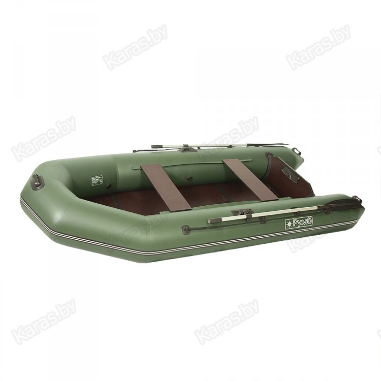 Моторная плоскодонная лодка имеет жесткий транец для установки мотора. Модель комплектуется жесткой 9 мм. сланью- книжкой , изготовленной из влагостойкой морской фанеры, по всему днищу, что необходимо для придания жесткости дну моторной лодки больших размеров. Оснащена передвижными сиденьями, леерным поясом для безопасности пассажиров. На носу рым-полукольцо. Модель выпускается с двухцветным привальным брусом без отбойника, что упрощает и ускоряет процесс сворачивания и упаковки лодки в мешок. Лодка упакована в чехол-сумку из ткани оксфорд с ПВХ накаткой. Дополнительная транспортная упаковка - полипропиленовый мешок.