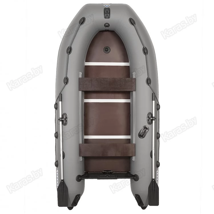 Килевая лодка из ткани плотностью 900 гр./кв.м. с полным набором опций для требовательных покупателей. Самый надежный тип соединения шип-паз у 9 мм слани и боковые стрингера придают дну необходимую для килевых лодок таких размеров жесткость. Диаметр борта 42 см. Дополнительный комфорт создадут наружная и внутренняя накладка под мотор на жестоком транце, страховочный рым-болт, ручка шкипера, кольцо для фиксации канистры бензина, усиление дна ПВХ профилем шириной 60 мм по баллонам и килю , а так же усиление на баллонах под боковой алюминиевый стрингер. Один из воздушных клапанов расположен на носу лодки, что значительно экономит время сборки-разборки лодки. . Упакована в конверт с лямками для переноски. Дополнительная транспортная упаковка -картонный короб.