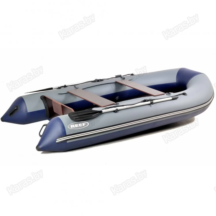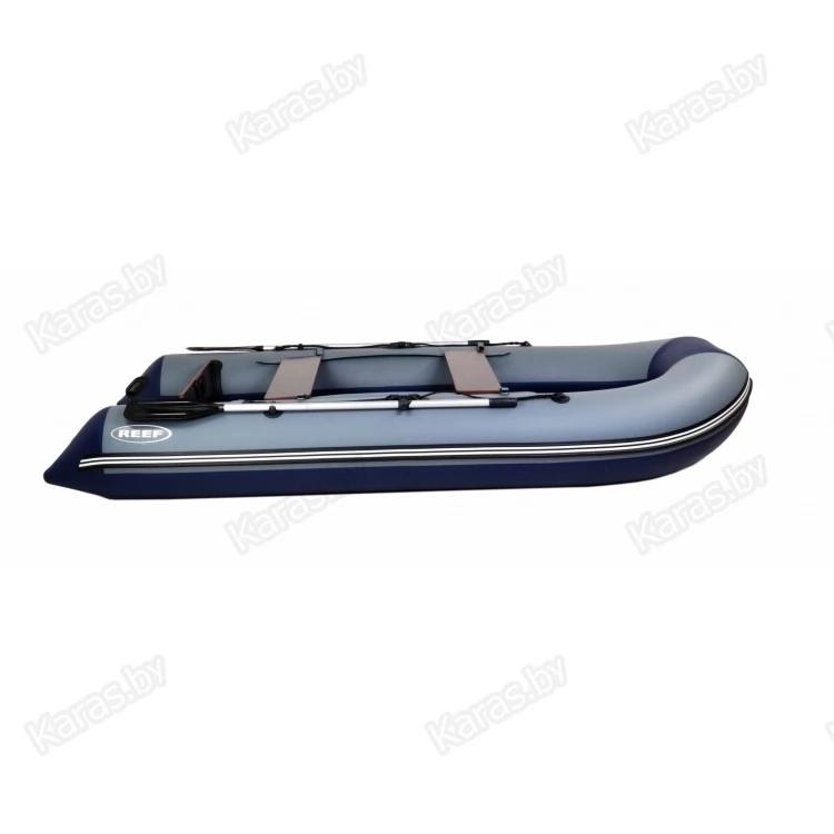 Надувная моторно-гребная лодка REEF 320KC имеет надувной киль + 2 стрингера. Мотор, устанавливаемый на REEF 320KС должен иметь мощность не больше 10 л.с. Для изготовления баллонов мы используем специальную ПВХ-ткань немецкой фирмы HEYTEX. Ее плотность 750-850 г/м2. Корпус лодки состоит из 3 герметичных отсеков. Это придает большую безопасность при действиях на воде. Для защиты корпуса лодки при швартовке и установки тента служит 9 мм привальный брус. В лодке предумотрены два передвижных сиденья по системе ликтрос-ликпаз. Ширина банки 20 см, длина - 90 см. Диаметр баллона лодки 0.41 м.