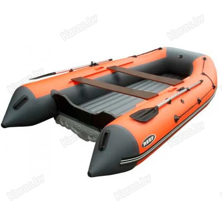 Надувная моторно-гребная лодка REEF 325НД оснащена полом низкого давления. Данный вид днища позволяет значительно сократить время на сборку/разборку лодки. Еще одним преимуществом является уменьшение веса лодки и более компактная упаковка в одну сумку. Мотор, устанавливаемый на REEF 325НД должен иметь мощность не больше 10 л.с.