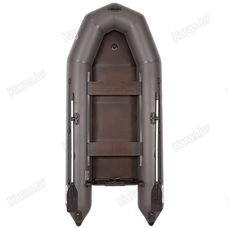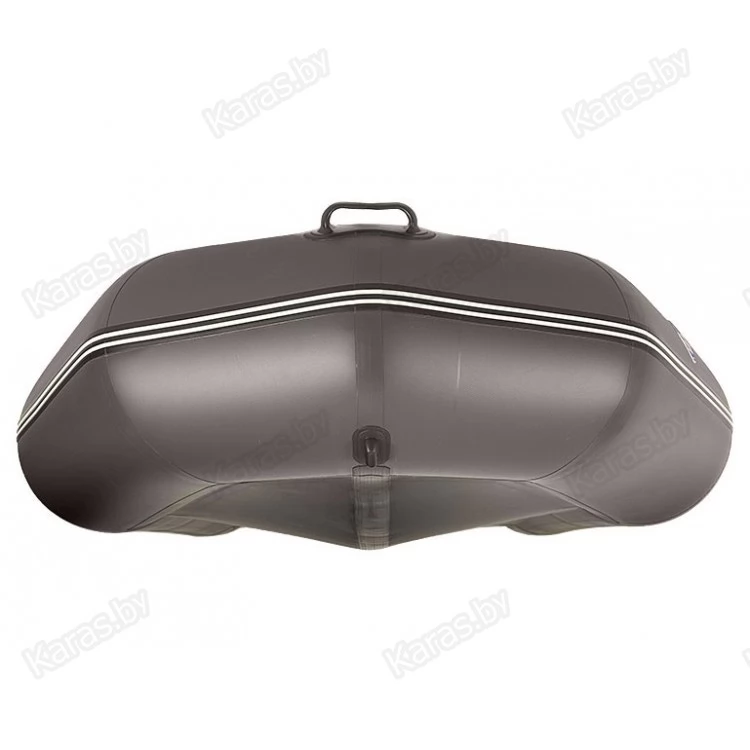 Моторная килевая лодка имеет жесткий транец для установки мотора. Модель комплектуется жесткой 9 мм. сланью, изготовленной из влагостойкой морской фанеры, по всему днищу, что необходимо для придания жесткости дна лодки с килем. Оснащена передвижными сиденьями, леерным поясом для безопасности пассажиров. На носу рым-полукольцо. Модель выпускается с двухцветным привальным брусом без отбойника, что упрощает и ускоряет процесс сворачивания и упаковки лодки в мешок. Лодка упакована в чехол-сумку из ткани оксфорд с ПВХ накаткой. Дополнительная транспортная упаковка - полипропиленовый мешок.