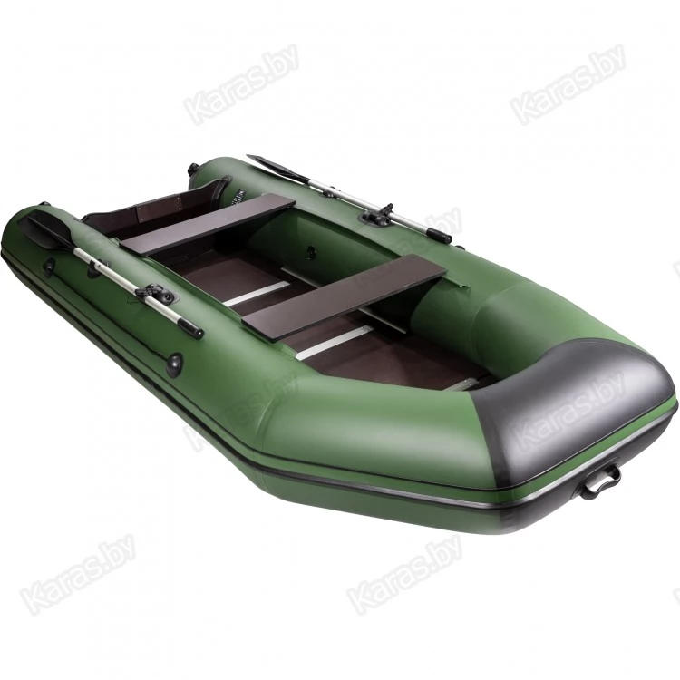 Надувная лодка Аква 2900 СК комплектуется жестким фанерным дном (9 мм), которое останавливается с помощью Н-образных профилей. Дополнительную жесткость полу придают алюминиевые стрингера.