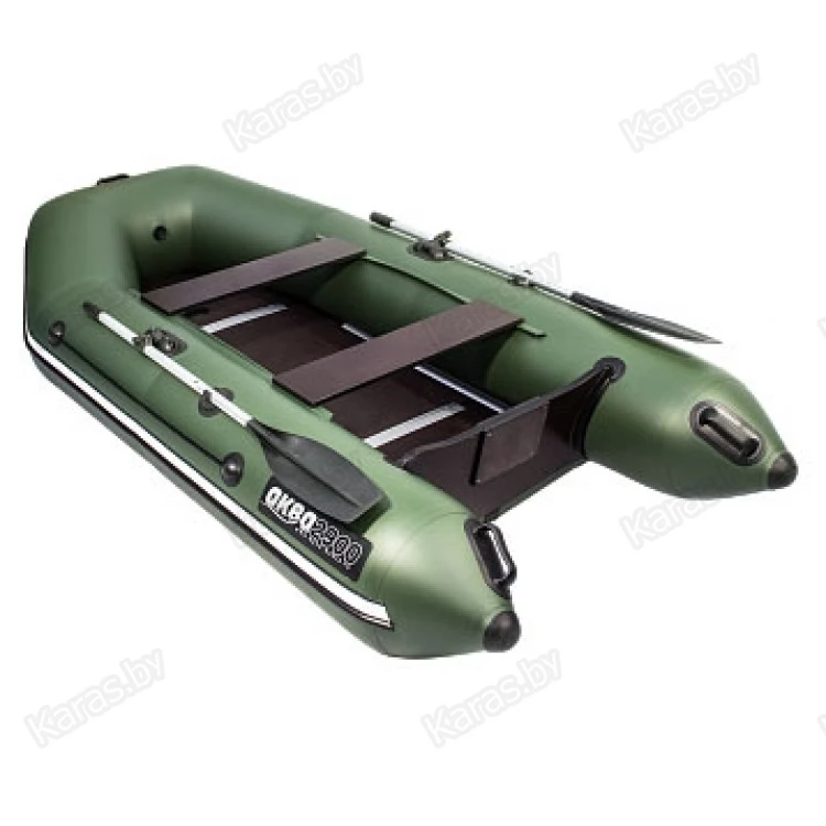 Надувная лодка Аква 2900 СК комплектуется жестким фанерным дном (9 мм), которое останавливается с помощью Н-образных профилей. Дополнительную жесткость полу придают алюминиевые стрингера.