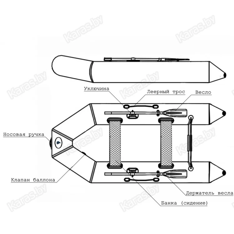 Надувная 3-местная ПВХ лодка Big Boat TM280 (без настила, тёмно-серая)