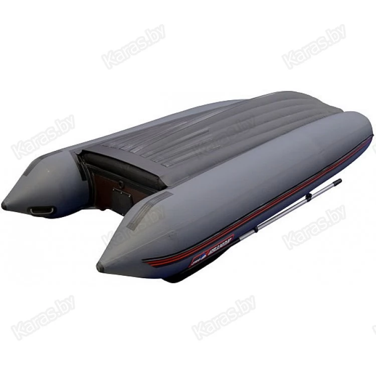 - Надувное дно низкого давления уже в базовой комплектации усилено в кормовой и носовой части специальной защитной ПВХ полосой, это позволяет безбоязненно вытягивать лодку на берег.