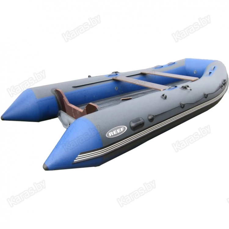 Для защиты корпуса лодки при швартовке и установки тента служит 9 мм привальный брус. В комплектацию лодки входят 2 передвижных сидения по системе ликтрос-ликпаз. Мотор, устанавливаемый на REEF Тритон 360 НД должен иметь мощность не больше 20 л.с.