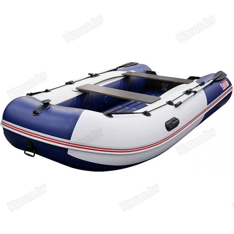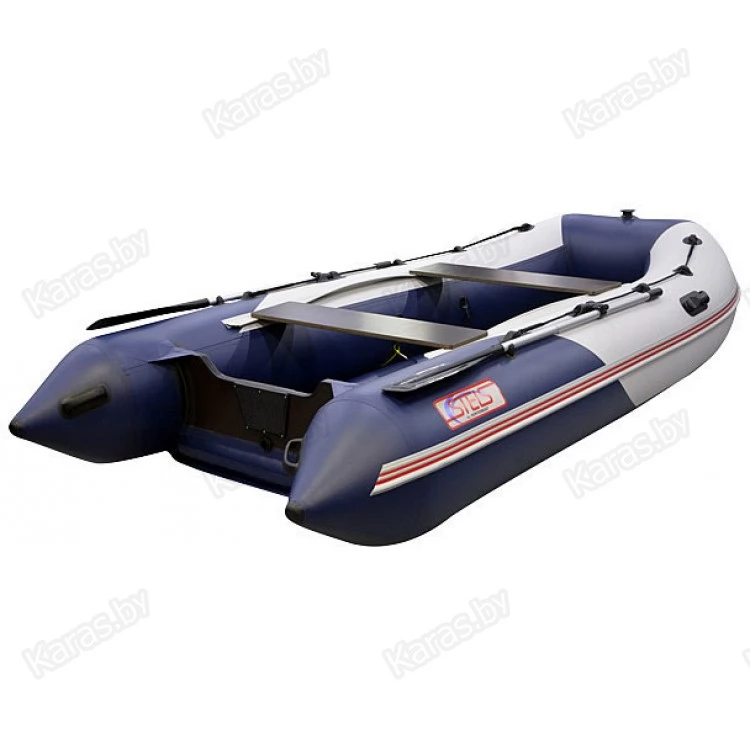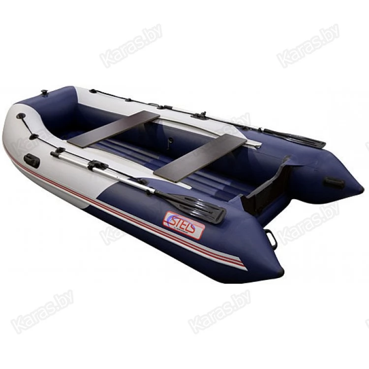 Надувная лодка СТЕЛС 355 АЭРО со стационарным вклеенным умеренно-килевым дном низкого давления (НДНД) рассчитана на использование с мотором до 20 л.с. с максимальной загрузкой до 700 кг. Предназначена для рыбалки, охоты и активного отдыха на воде небольшой компанией. Выпускается в комбинированном сине-белом цвете.