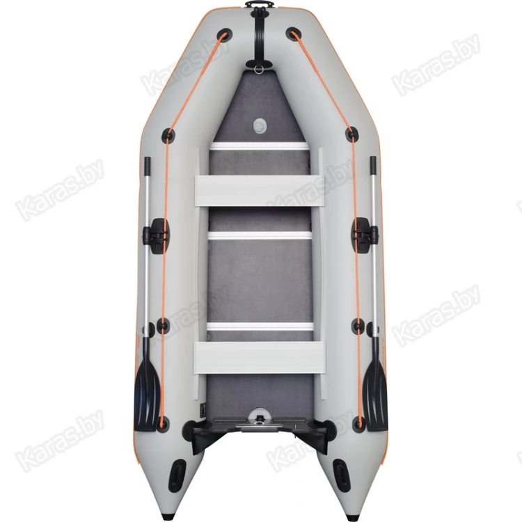 Корпус лодки ПВХ состоит из двух надувных баллонов диаметром 42 см., разделенных на три независимых отсека, что в случае выхода из строя одного из отсеков позволит сохранить положение равновесия и безопасно добраться до берега.