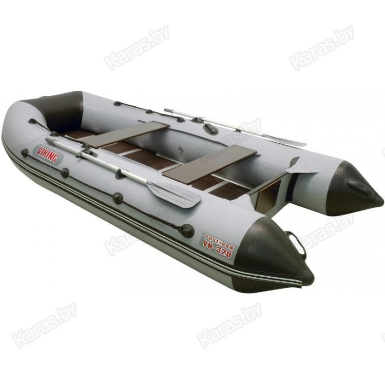 В базовой комплектации на лодках серии Викинг штатно установлена защита по кильсону (одна полоса), сливной клапан, ручка пилота, полноразмерные бортовые леера, удобные, грамотно расположенные ручки для переноски и носовой буксировочный рым-кольцо. Крепление банок – как и на старших моделях компании Посейдон лик-трос/лик-паз.