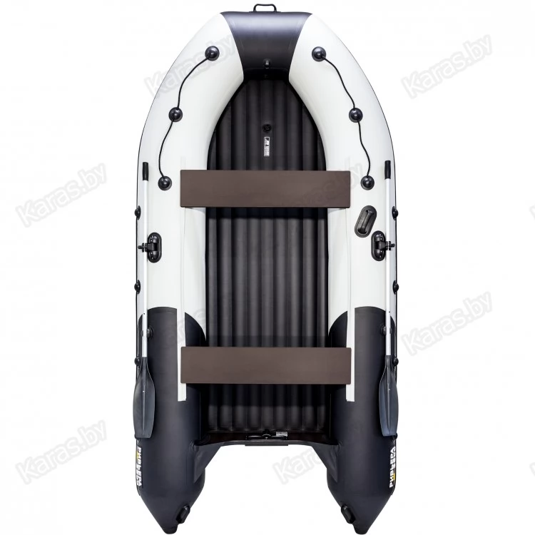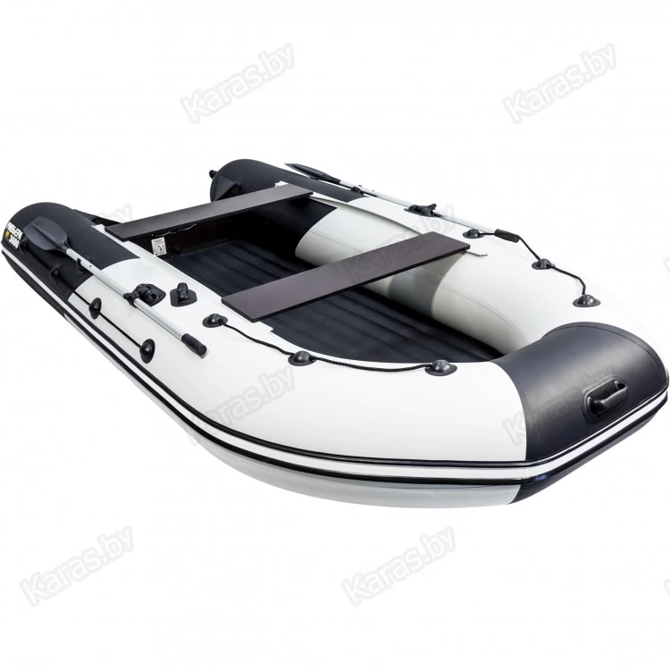 Донная часть лодки изготовлена из ПВХ ткани повышенной плотности, усиленная армированным слоем с плетением "Панама". баллоны и надувное дно лодки бронированы профилем ПВХ, что делает их малоуязвимыми в условиях экстремальной эксплуатации.