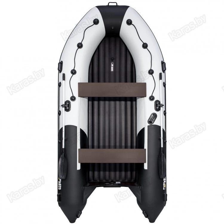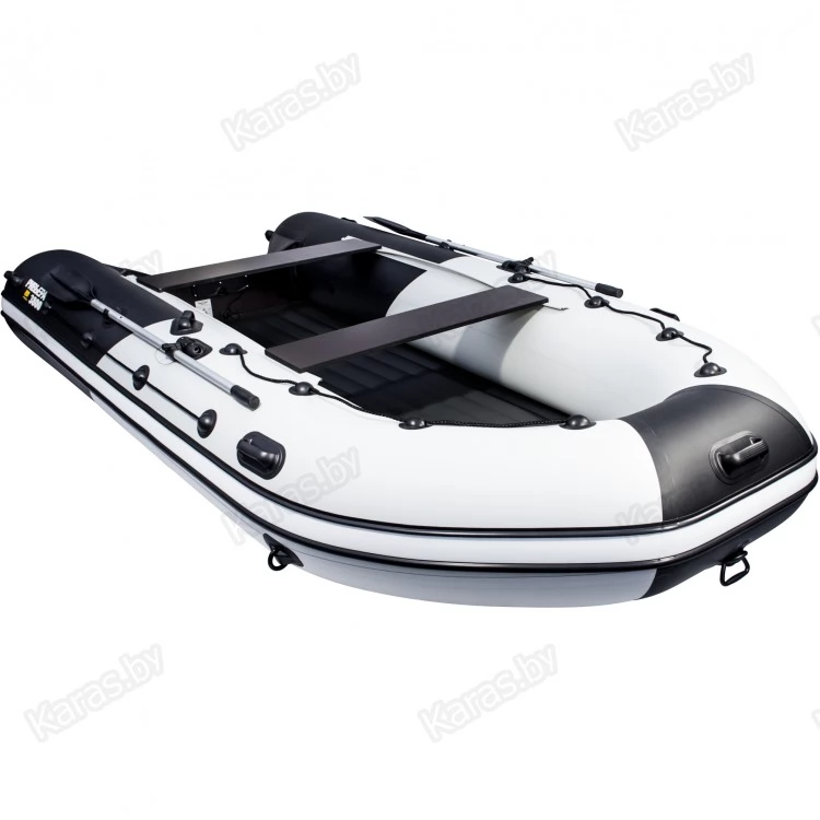 Донная часть лодки изготовлена из ПВХ ткани повышенной плотности, усиленная армированным слоем с плетением "Панама". баллоны и надувное дно лодки бронированы профилем ПВХ, что делает их малоуязвимыми в условиях экстремальной эксплуатации.