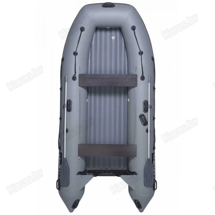 ПВХ лодка Адмирал 350 НДНД имеет надувное дно и жестко вклеенный транец. Она оборудована передвижными сидениями и предназначена под мотор максимальной мощностью до 18л.с. Модель удобная, легкая, практичная и является хорошим выбором.