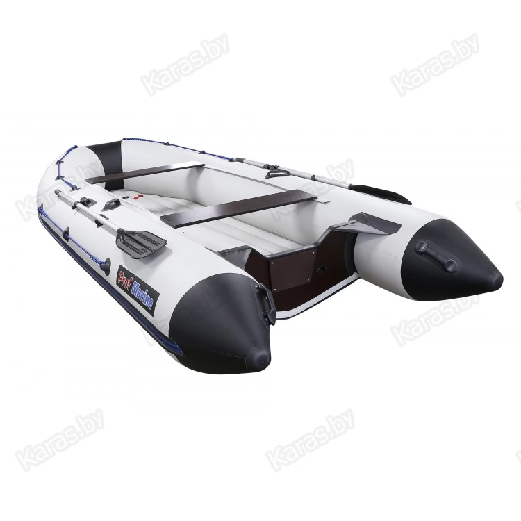 Баллоны ProfMarine PM 400 Air изготовлены из армированного ПВХ плотностью 1000 г/м2 производства Южной Кореи. Материал устойчив к воздействию соленой воды, бензина, масла, солнечных лучей. Диаметр баллонов лодки 55 см, 4 герметичных отсека (+ 1 дно). Швы имеют четырехслойную проклейку для повышения износостойкости. Для защиты баллонов при швартовке установлен привальный брус. Надувная лодка поставляется в сером, зеленом или черно-сером цвете.