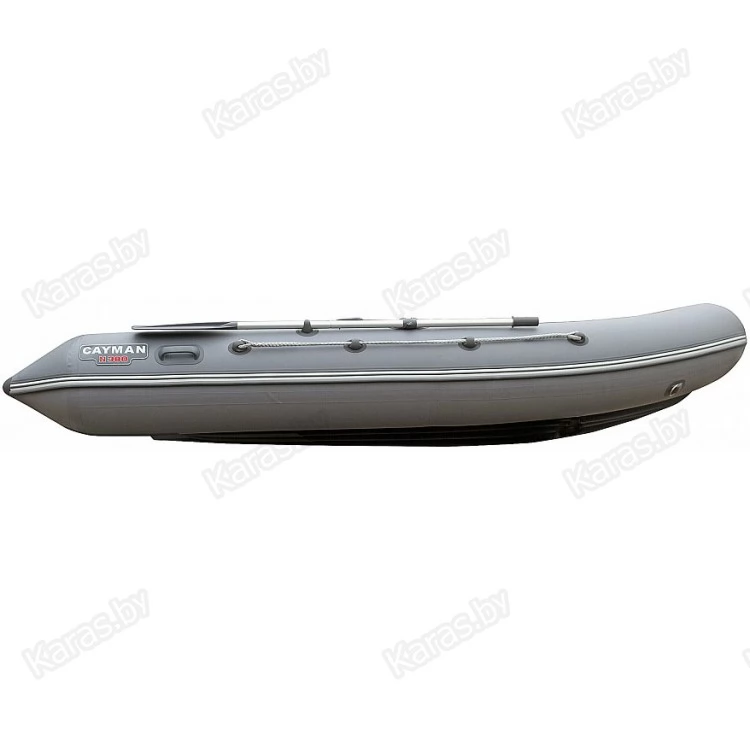 Надувная лодка Кайман N 380 НДНД - легендарная четырехместная лодка со стационарным усиленным транцем и надувным дном низкого давления, создана для рыбаков и любителей комфортного отдыха, ценящих надежность, разумную цену, прекрасные ходовые качества и безопасность. Стремительные обводы и переменный диаметр надувного корпуса, умеренная килеватость натянутого как струна днища, качественные материалы и надежные комплектующие - все это неизменные признаки надувной лодки Кайман.