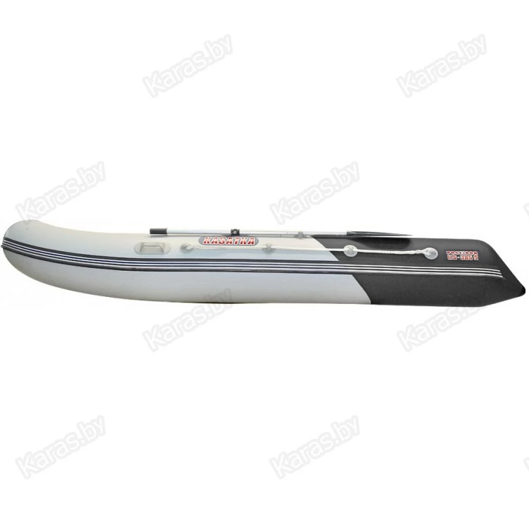 Данная модель является новой модификацией Касатки-385. Корпус лодки заужен до 177 см (как у Касатки 365), однако диаметр баллона и килеватость остались без изменений. Это позволяет получить более плавный выход в режим глиссирования и максимальную скорость примерно на 3-4км/ч больше за счет уменьшения смоченной поверхности*. Мореходные качества, пассажировместимость и управляемость также остались без изменений.