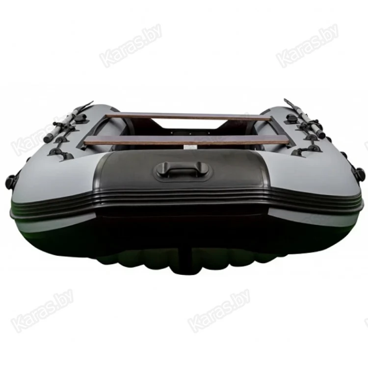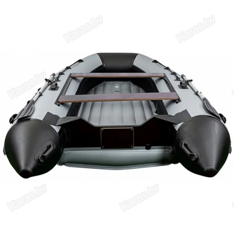 - Жёсткий встроенный транец из водонепроницаемой фанеры толщиной 24 мм. с двумя накладками — позволяет использовать подвесной мотор до 30 л.с. Транец оборудован сливным клапаном. Косынки из ПВХ между транцем и баллонами защищают кокпит от попадания брызг от мотора.