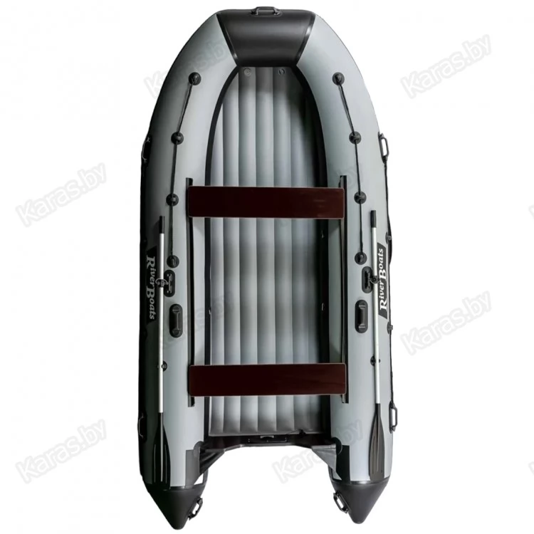 - Удобство. Характерный для всех лодок RiverBoats леерный трос проходит по верхней поверхности носа лодки и по боковой поверхности бортов. Передвижные сиденья фиксируются к баллонам креплениями ликтрос-ликпаз и могут перемещаться в удобное для Вас положение. На носу установлена ручка для переноски. Дополнительные ручки для переноски имеются на концевиках баллонов, ручка водителя — посередине баллона справа и слева.