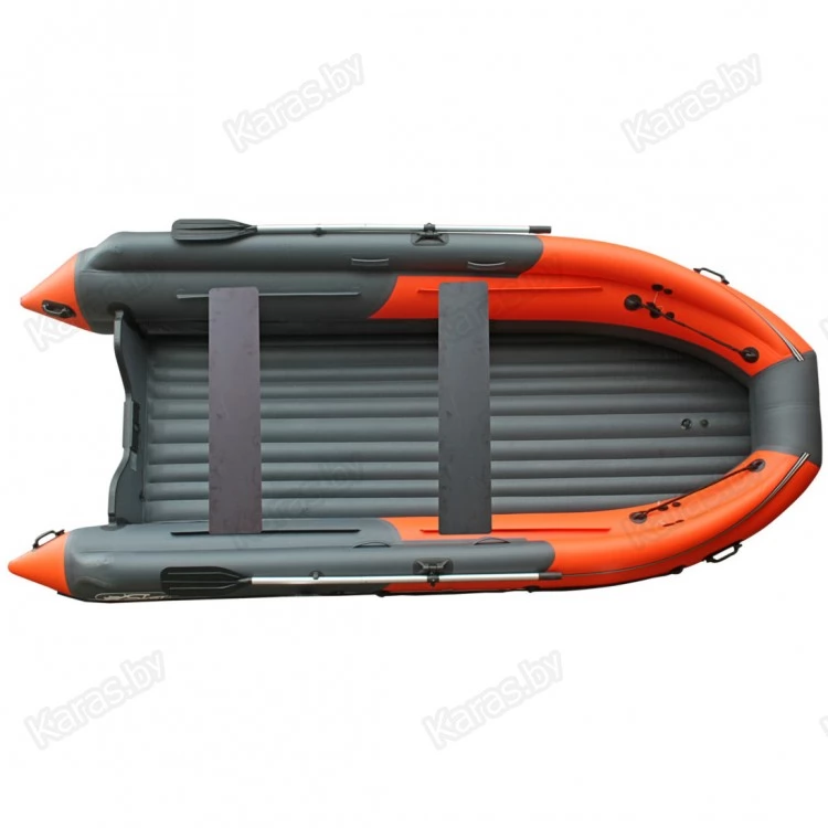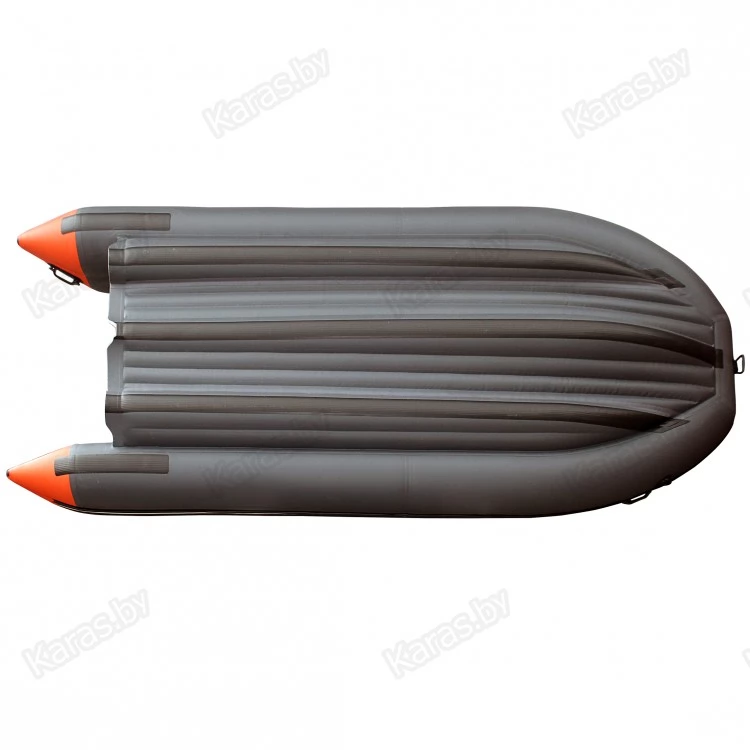 Корпус лодки ПВХ состоит из двух надувных своеобразных баллонов диаметром 55 см., разделенных на четыре независимых отсека + дно, таким образом, чтобы в случае выхода из строя одного из отсеков лодка сохраняла положение равновесия.
