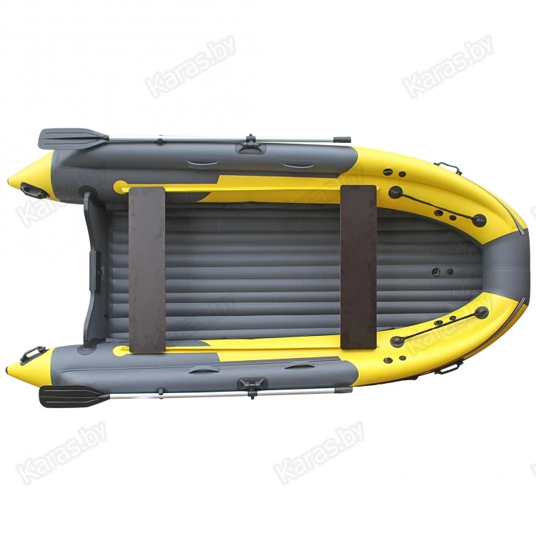 Для максимальной защиты лодки от механических повреждений, баллоны дополнительно проклеены привальным брусом с брызгоотбойником (броня) в 2 ряда. По всей центральной части и боковым частям низа дна, а также на концах баллонов дополнительно наклеен донный брус.