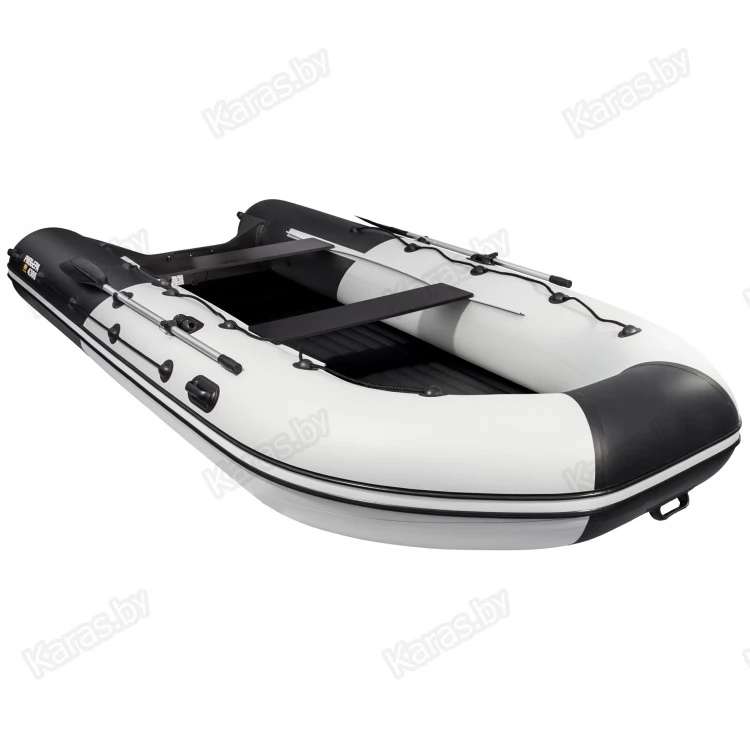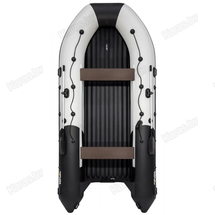 Донная часть лодки изготовлена из ПВХ ткани повышенной плотности, усиленная армированным слоем с плетением "Панама". баллоны и надувное дно лодки бронированы профилем ПВХ, что делает их малоуязвимыми в условиях экстремальной эксплуатации.