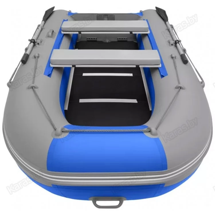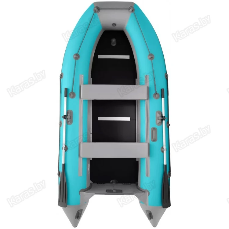 Классическое исполнение лодки: пайольный пол с надувными баллонами и килем. Пайолы позволяют максимально комфортно рыбачить стоя. Лодка и пол упакованы в отдельные сумки, что значительно облегчает их транспортировку. За счет киля лодка будет уверенно проходить небольшую волну. Транец изготовлен из влагостойкой фанеры, которая дополнительно заламинирована ПВХ тканью, что продлевает срок службы. Лодка имеет жестко вклееный транец из влагостойкой фанеры. В месте крепленя двигателя предусмотрены накладки для уменьшения износа.