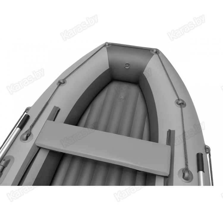 Лодка оснащена леерными поясами, каждый из которых растянут по внешней стороне борта лодки между двух шайб. Данная модель комплектуется разборными веслами с пластиковой фурнитурой и поворотными уключинами.