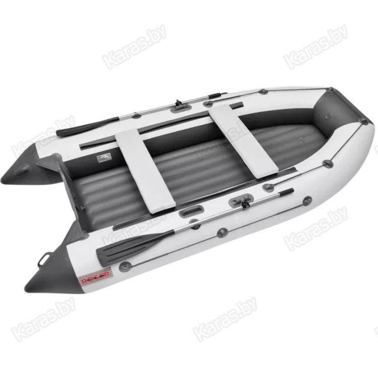 Моторно-гребная лодка ПВХ Roger Trofey 2900 (БЕЗкилевая) - это моторно-гребная лодка из ПВХ с жестким транцем и полноценным надувным дном низкого давления (НДНД). Надувное дно низкого давления (НДНД) накачивается до 0,35-0,4 Bar. Дно низкого давления на ПВХ лодке позволяет быстро и без проблем привести её в готовое состояние.