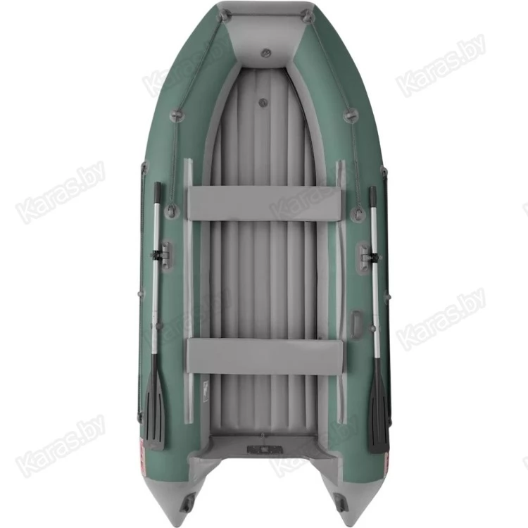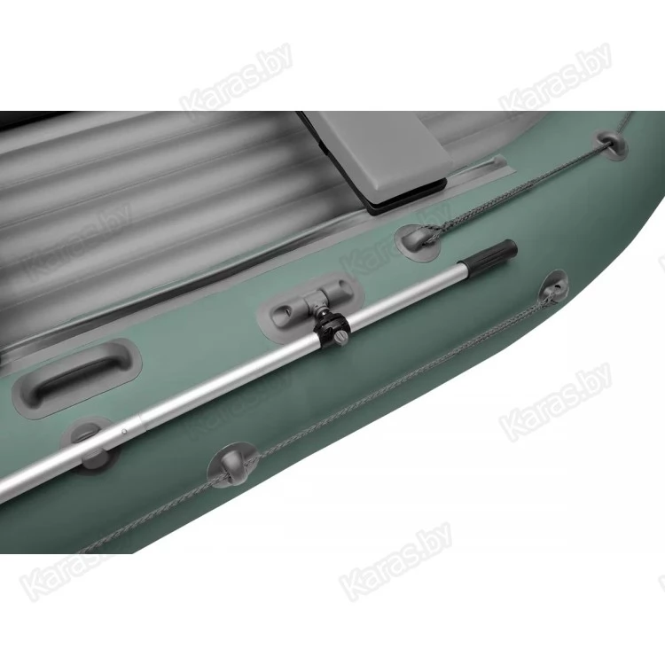 Лодка оснащена леерными поясами, каждый из которых растянут по внешней стороне борта лодки между двух шайб. Данная модель комплектуется разборными веслами с пластиковой фурнитурой и поворотными уключинами.