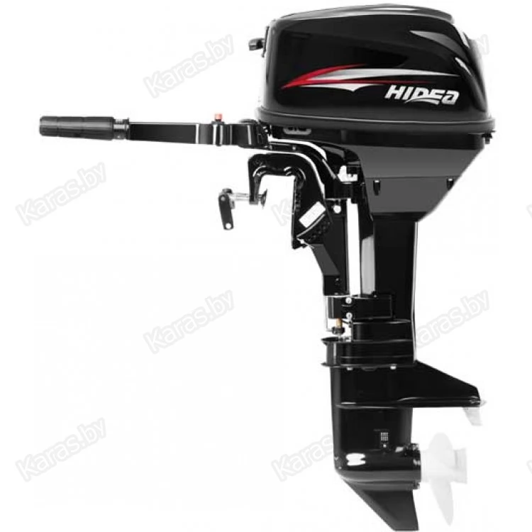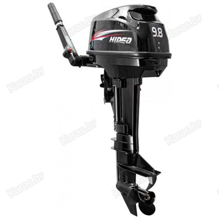 Hidea HD9.8FHS - двухтактный двухцилиндровый мотор мощностью 9,8 л.с. с румпельным управлением; двумя передачами: вперёд-нейтраль-назад ; цифровой системой зажигания (CD); ручным переводом в мелководный режим, внешним бензобаком на 12 литров, рассчитанный на стандартную высоту транца 381 мм.