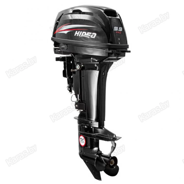 Hidea HD9.9 FFES PRO - двухтактный двухцилиндровый мотор мощностью 20 л.с. дистанционным управлением и электрозапуском; тремя передачами: вперёд-нейтраль-назад ; цифровой системой зажигания (CDI); генератором; ручным переводом в мелководный режим, внешним бензобаком на 24 литра, рассчитанный на стандартную высоту транца 381 мм.