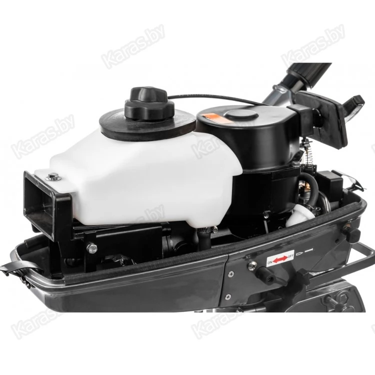 Подвесной лодочный мотор Mikatsu (Микатсу) M4FHS является примером оптимального соотношения высокой удельной мощности, малого веса и невысокой цены. Он является аналогом хорошо себя зарекомендовавшего за многие годы работы японского двигателя Tohatsu (Тохатсу). Его 2-х тактный одноцилиндровый двигатель объемом 82,1 см3 мощностью 4 л. с. прекрасно подойдет для рыбалки, охоты или отдыха на воде в лодке от 2 до 3 м. Встроенного бака объемом 1,5 л хватит на час работы на полном ходу. У данного ПЛМ есть передняя и нейтральная скорости. От своих 4-х тактных собратьев его отличает меньший вес, большая удельная мощность и простота конструкции, а значит повышенная надежность. Усовершенствованная цифровая система зажигания CDI обеспечит легкий запуск двигателя в любых погодных условиях.