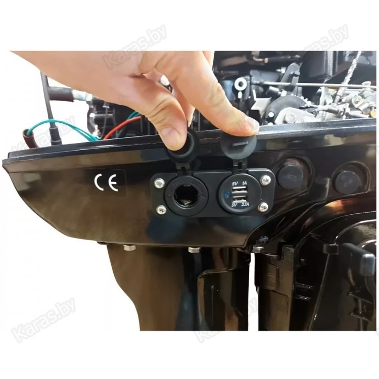 Производителем предусмотрено размещение указателя уровня масла, который позволит быть уверенным в безопасности эксплуатации подвесного мотора. Система водяного охлаждения позволяет контролировать температуру двигателя. Лодочные моторы Parsun T9.9 обладают низким уровнем шума за счет системы гашения звука и выхлопа через гребной винт. В комплекте топливный бак на 24 литров с топливным шлангом, тахометр, гнездо прикуривателя USB с выходами на 2.1А и 1А.